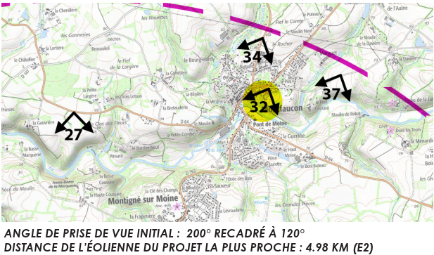 Afin de répondre à la demande de compléments n°1, les éoliennes envisagées seront maintenant 3 éoliennes de 150m de hauteur en bout de pales, produisant chacune 2,2 MW, avec un rotor de 110m.
