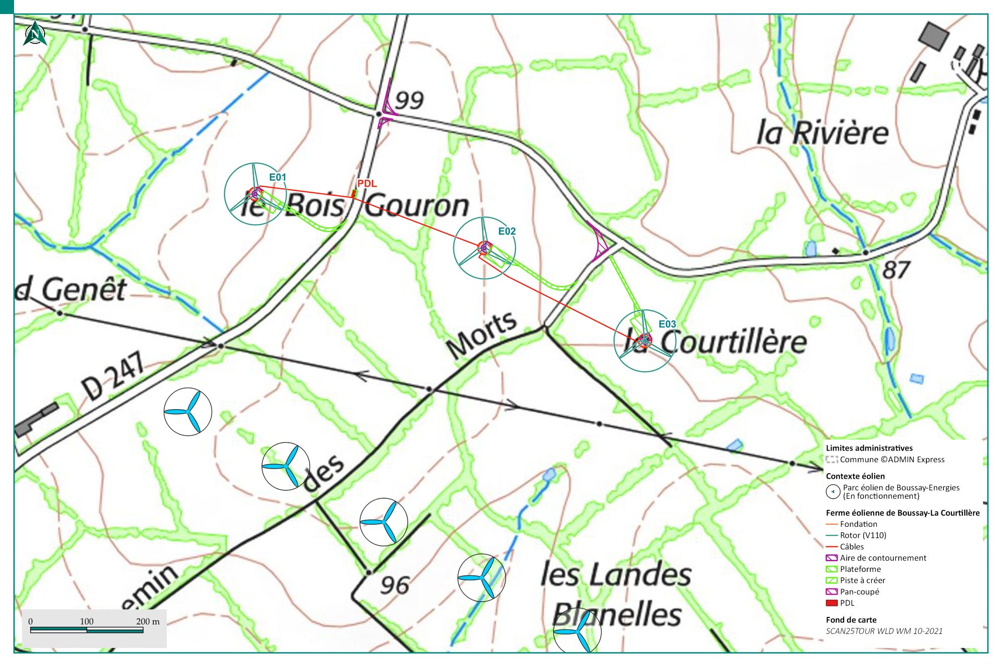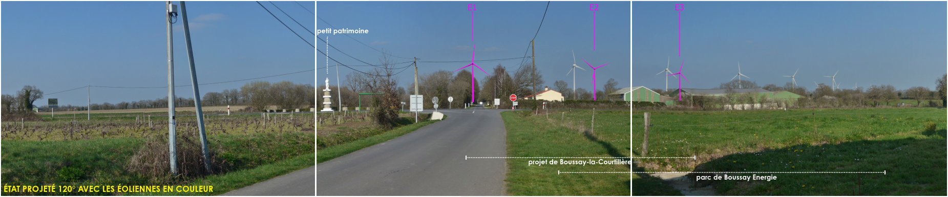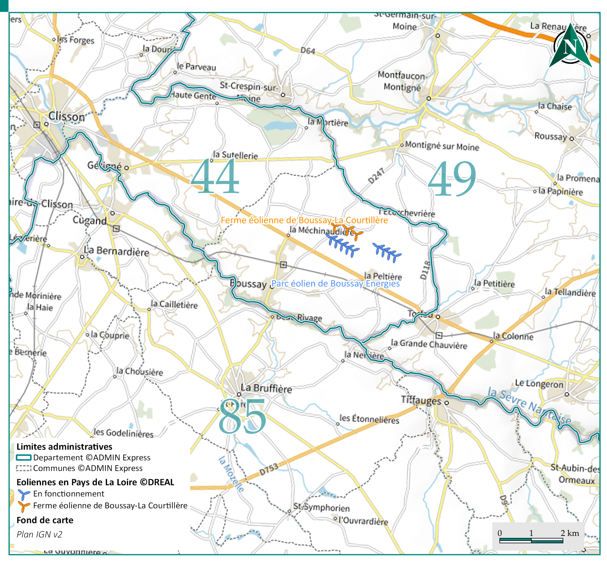 Le projet éolien de Boussay-la-Courtillère est situé sur la commune de Boussay, en extension géographique du parc existant de Boussay Energies. Ce projet se situe au nord de la route départementale 149.
